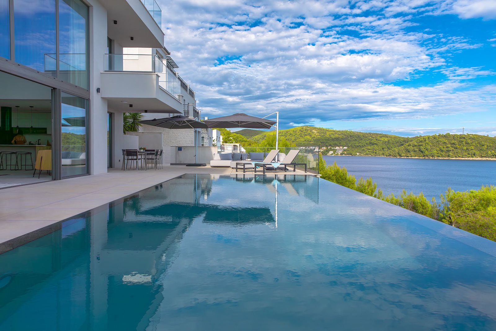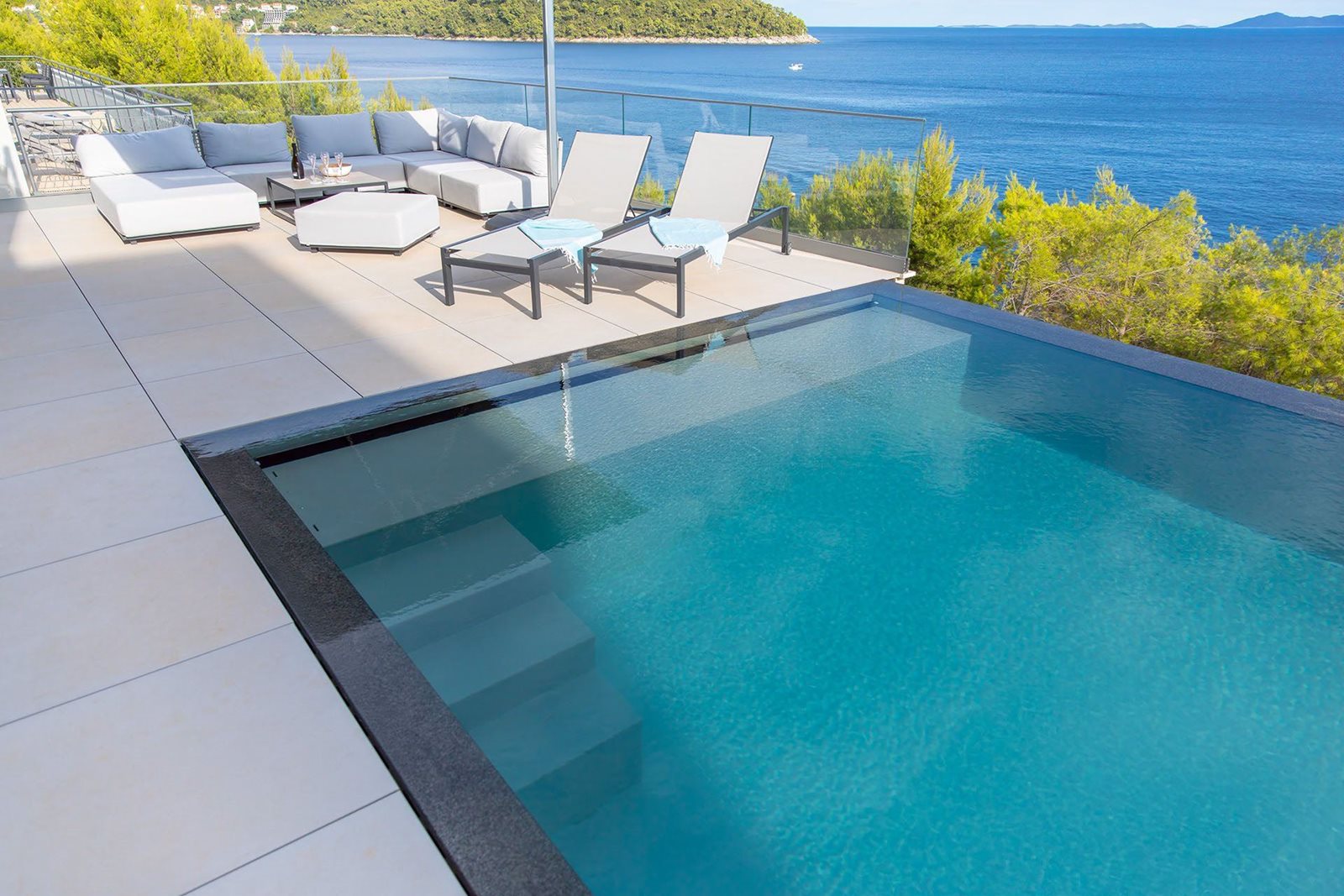 Het gezin Dubois was op zoek naar een plek om samen met familie en vrienden vakanties door te brengen en zich helemaal op hun gemak te voelen. Ze vonden een villa op een heuvel met grote ramen en een oneindig uitzicht op zee, een architectonisch pareltje dat een echt tweede thuis werd. De sfeer van exclusiviteit en luxe is nu bekroond met een NIVEKO-zwembad dat het natuurlijke middelpunt van de tuin is geworden.